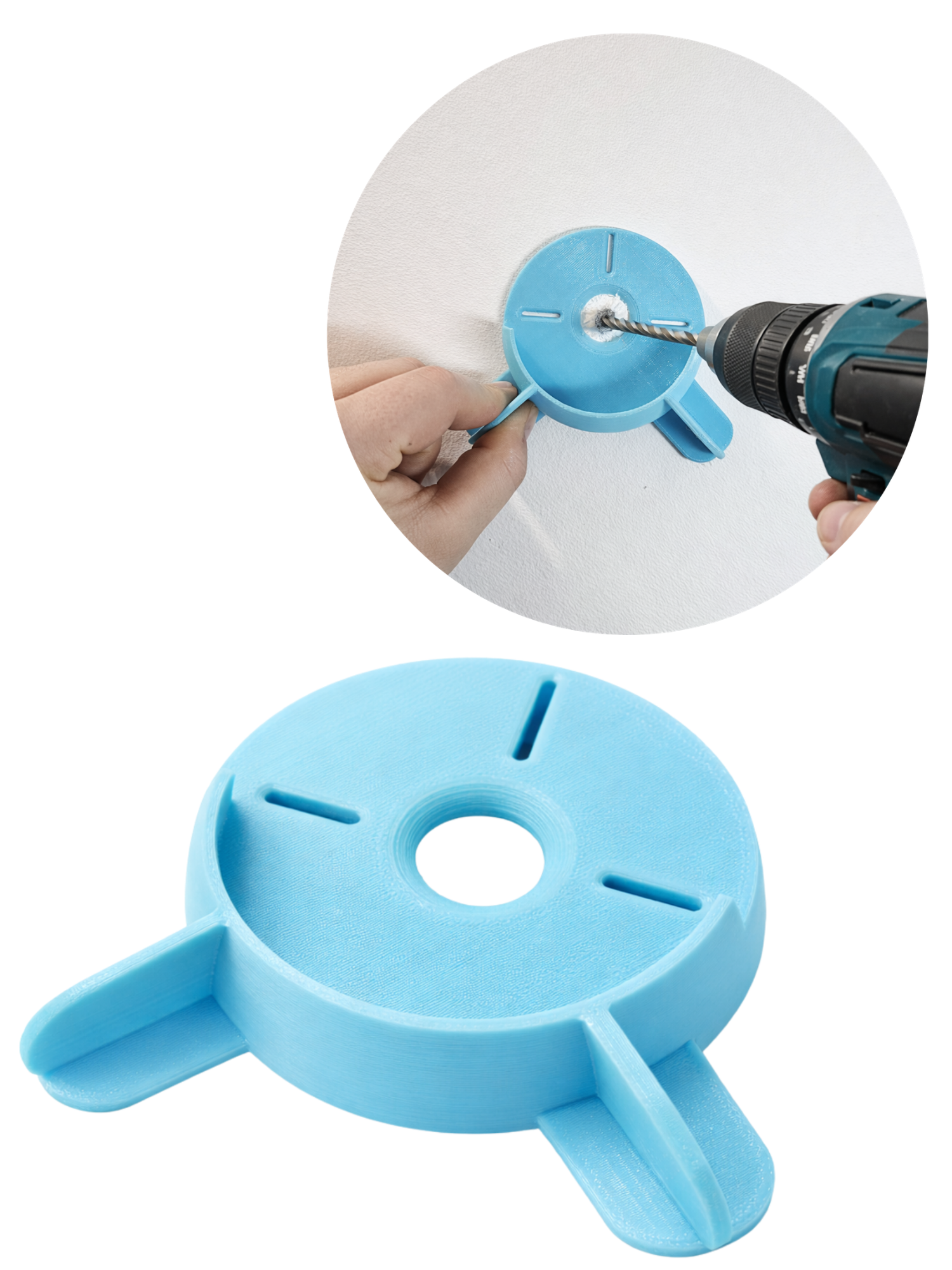 Parametry:• Otwór prowadzący: 20 mm.• Zalecana maksymalna średnica wiertła: 18 mm.• Sposób użycia: ręczny docisk do powierzchni.• Wykonanie: wydruk 3D.