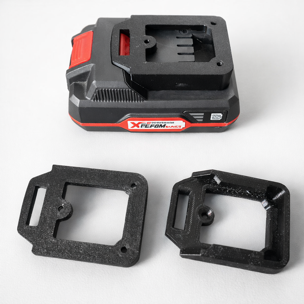 Uchwyt ma otwory montażowe umożliwiające przykręcenie go do ściany, płyty meblowej, regału lub zabudowy w busie. Możesz zamontować kilka sztuk obok siebie i stworzyć własną „stację dokującą” na wszystkie baterie z systemu Parkside X20V.