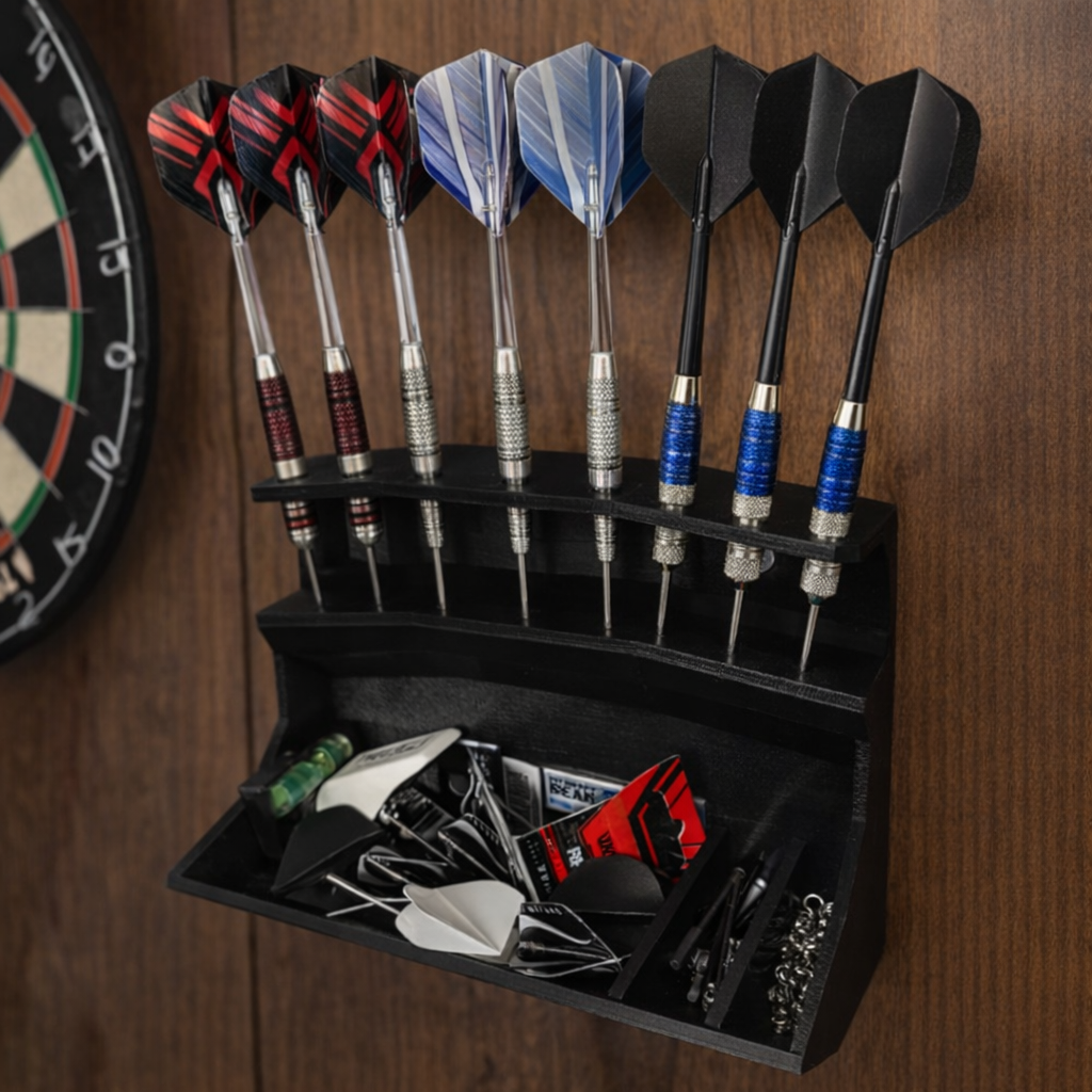 Organizer / uchwyt na 9 lotek do darta + miejsce na akcesoria