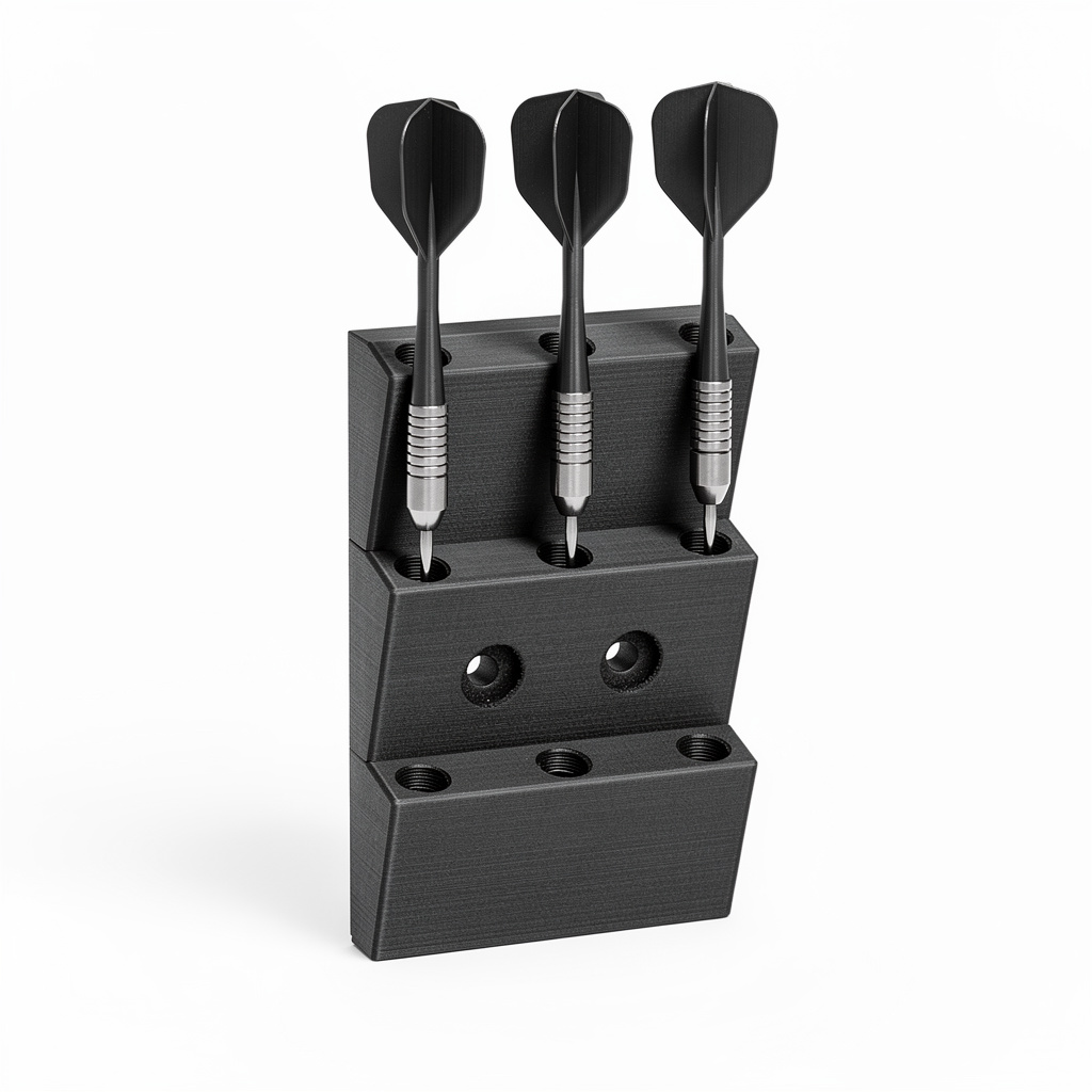 Praktyczny uchwyt ścienny / podstawka na rzutki do darta z miejscem na 9 lotek. Pomaga utrzymać porządek w strefie gry i przechowywać rzutki w jednym, stałym miejscu – bez luzem leżących ostrych grotów na półce czy w szufladzie.