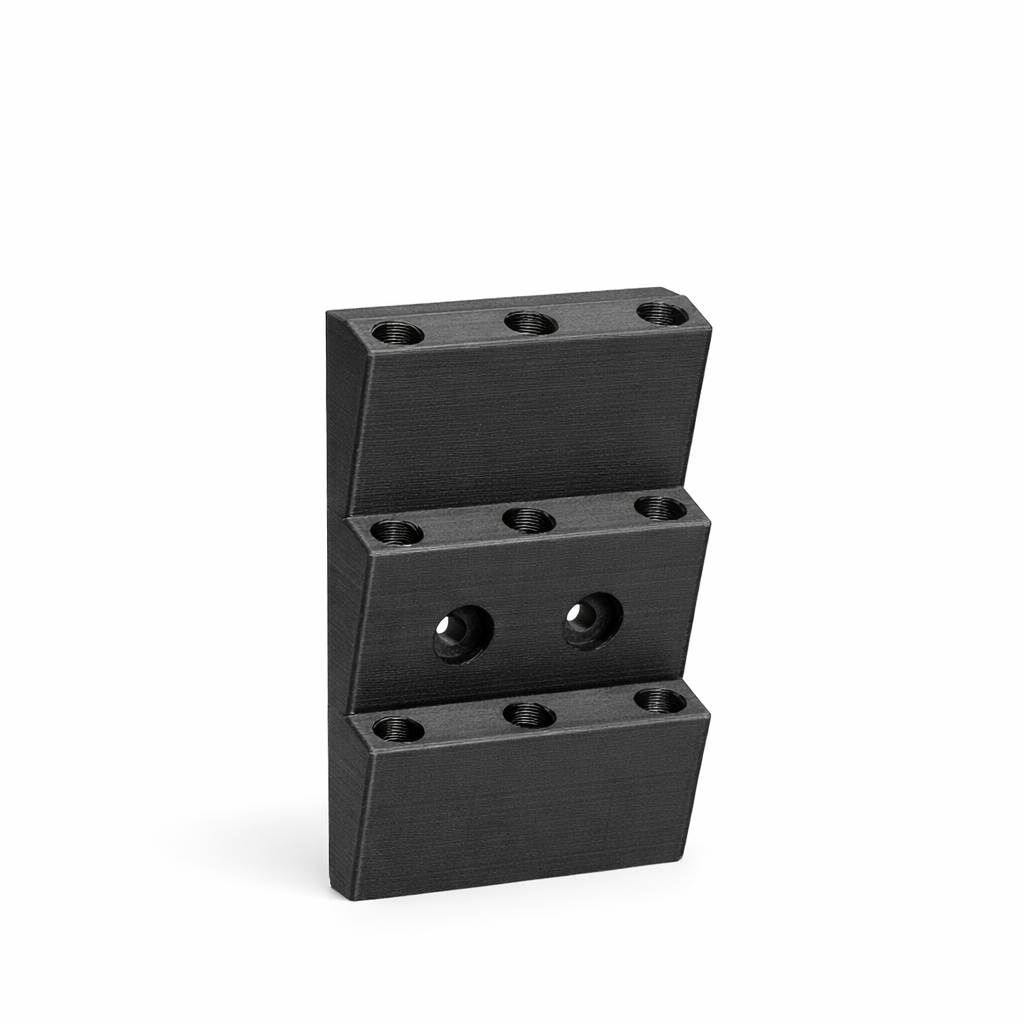 Uchwyt jest wykonany w technologii druku 3D z tworzywa sztucznego (widoczne linie warstw są naturalną cechą druku 3D). Produkt posiada oznaczenie wersji/pojemności (9 miejsc) na elemencie, co ułatwia identyfikację.