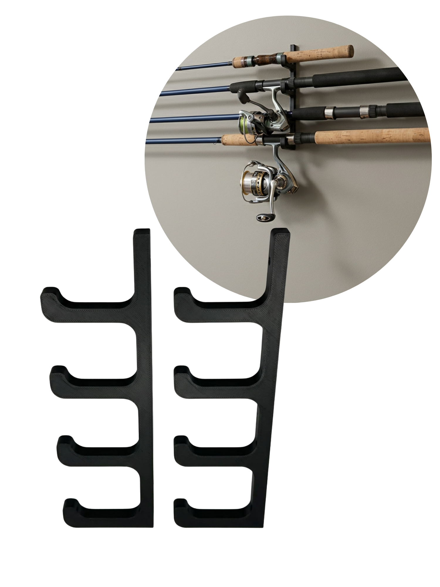 • 2 x uchwyt ścienny (komplet na 4 wędki) – czarny, druk 3D