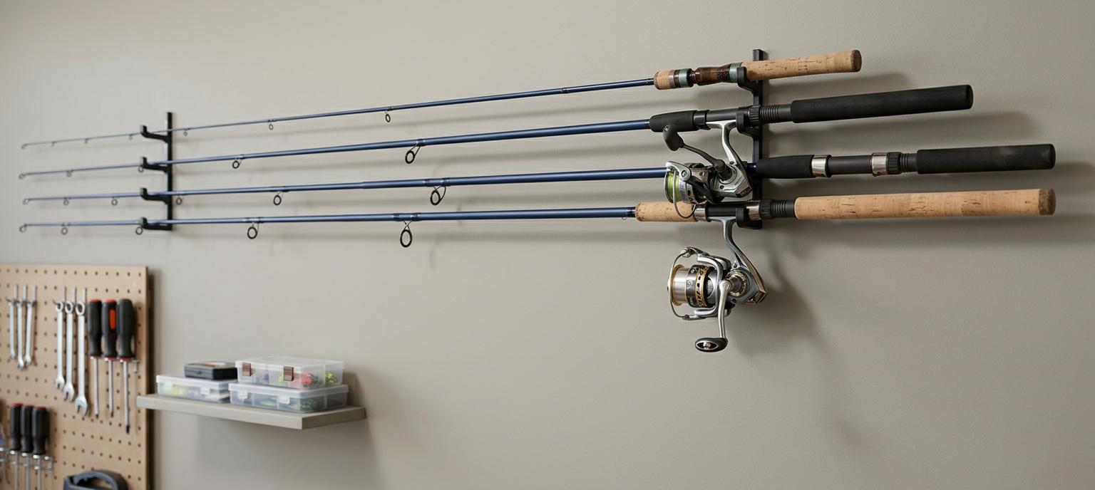 Masz dość bałaganu w sprzęcie wędkarskim? Ten uchwyt pozwala przechowywać wędki w poziomie,