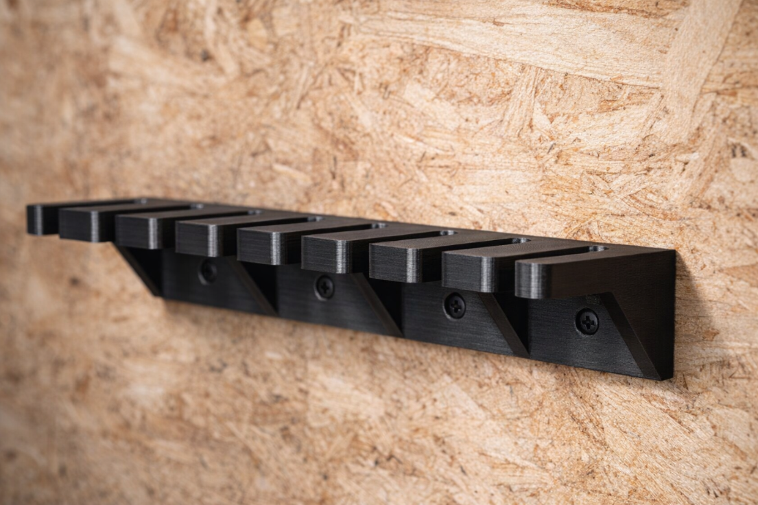 Profesjonalny, szeroki uchwyt na 8 ścisków typu F. Rozwiązanie dedykowane dla osób posiadających rozbudowany park maszynowy i ceniących nienaganny porządek.